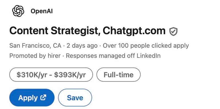 ChatGPT is hiring a Content Strategist for $300-400K a year.